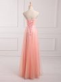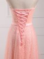Empire Dama Dress for Quinceanera Peach Sweetheart Tulle and Lace Sleeveless Floor Length Lace Up