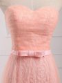 Home >  Special Occasion Dresses >  Dama Dresses 2018 > Empire Dama Dress for Quinceanera Peach Sweetheart Tulle and Lace Sleeveless Floor Length Lace Up
