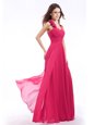 Empire Dress for Prom Hot Pink Straps Chiffon Sleeveless Floor Length Zipper