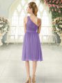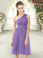 Empire Dress for Prom Lavender One Shoulder Chiffon Sleeveless Knee Length Side Zipper