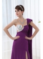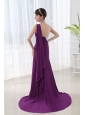 Home >  Prom Dresses >  Discount Prom Dresses > Empire Eggplant Purple Prom Dress with Watteau Trian Strain and Beading Ruching
