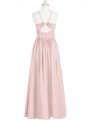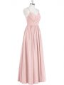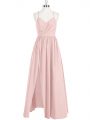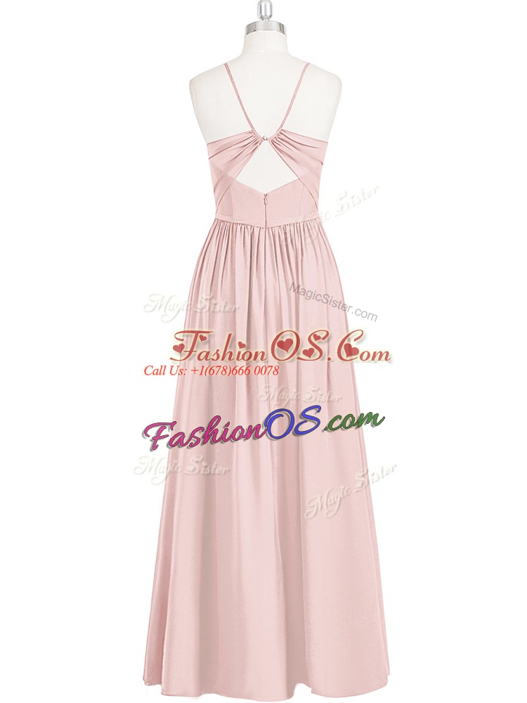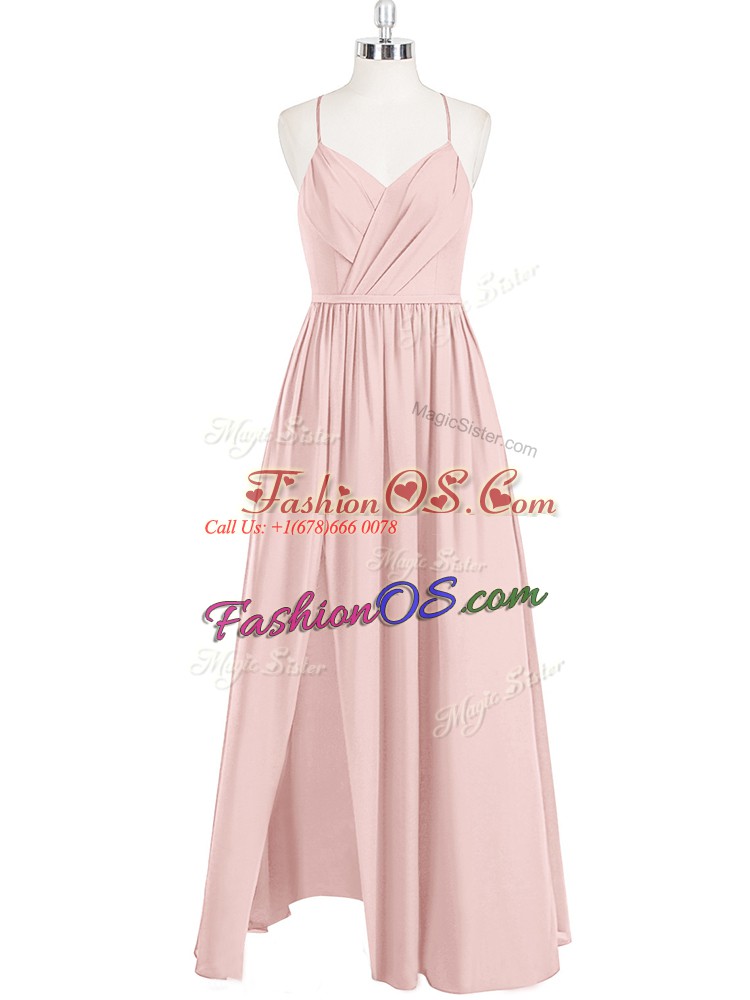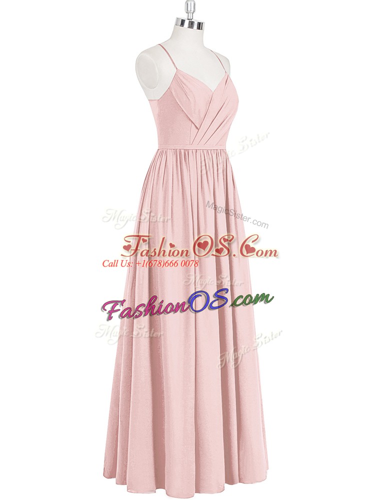 Empire Evening Dress Pink Spaghetti Straps Chiffon Sleeveless Floor Length Criss Cross