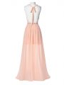 Home >  Evening Dresses > Empire Evening Gowns Peach Halter Top Chiffon Sleeveless Floor Length Backless