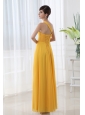 Empire Gold One Shoulder Beading and Ruching Chiffon Prom Dress