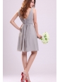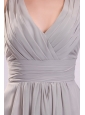 Empire Gray V-neck Ruching Chiffon Knee-length Prom Dress