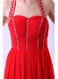 Empire Halter Beading Floor-length Red Chiffon Prom Dress