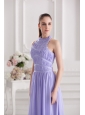 Empire Halter Top Floor-length Ruching Lavender Prom Dress