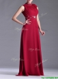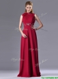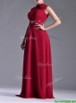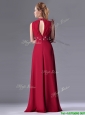Empire High Neck Open Back Red Mother of the Bride Dress with Beading and Hand Crafted