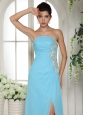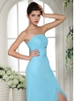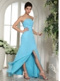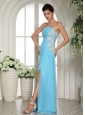Home >  Prom Dresses >  Discount Prom Dresses > Empire High Slit Baby Blue 2013 Prom Dress With Ruch and Appliques