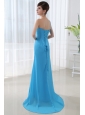 Home >  Prom Dresses >  Fashionable Prom Dresses > Empire High Slit Prom Dress with Ruchings and Beading One Shoulder Aqua Bue