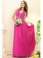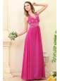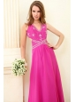 Empire Hot Pink V-neck Beading Chiffon Prom Dress