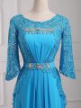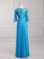 Empire Mother Of The Bride Dress Baby Blue Scoop Chiffon 3 4 Length Sleeve Floor Length Zipper
