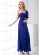 Empire One Shoulder Ankle-length Chiffon Blue Ruching Prom Dress