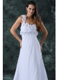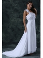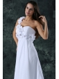 Empire One Shoulder Brush Train Hand Made Flower Zipper Up Chiffon Wedding Dress