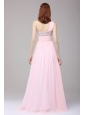 Empire One Shoulder Chiffon Beading Brush Train Prom Dress in Baby Pink