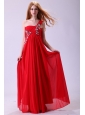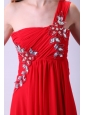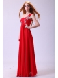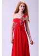 Empire One Shoulder Chiffon Red Prom Dress Beading Floor-length