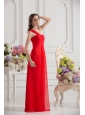 Empire One Shoulder Chiffon Ruching Floor-length Prom Dress in Red