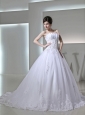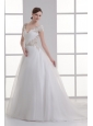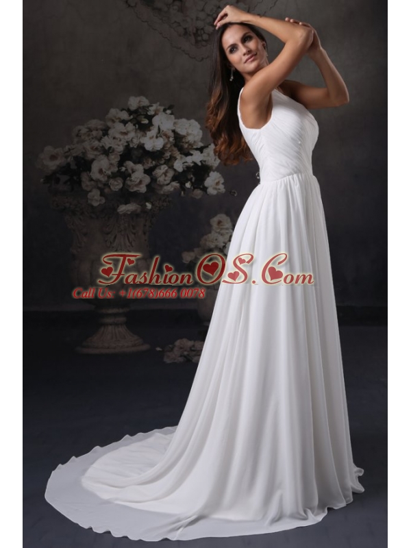 Empire One Shoulder Chiffon Ruching Side Zipper Wedding Dress with Court Train