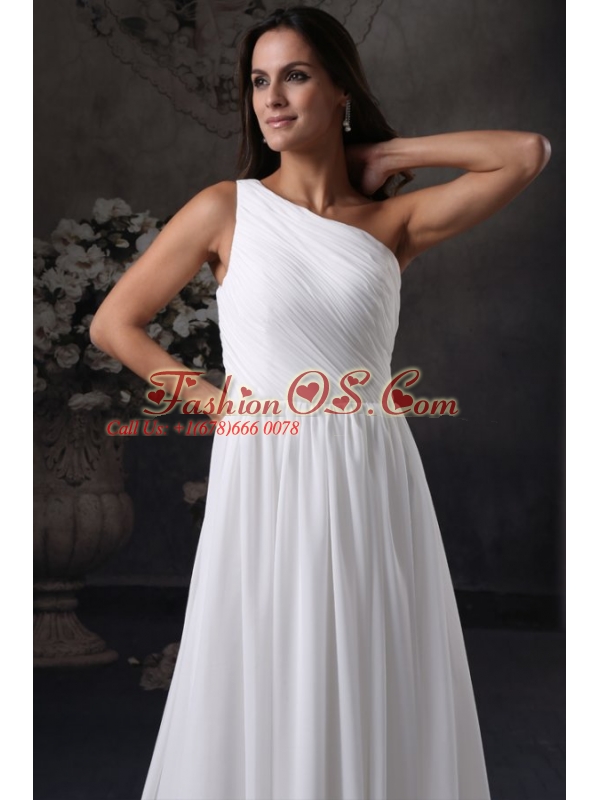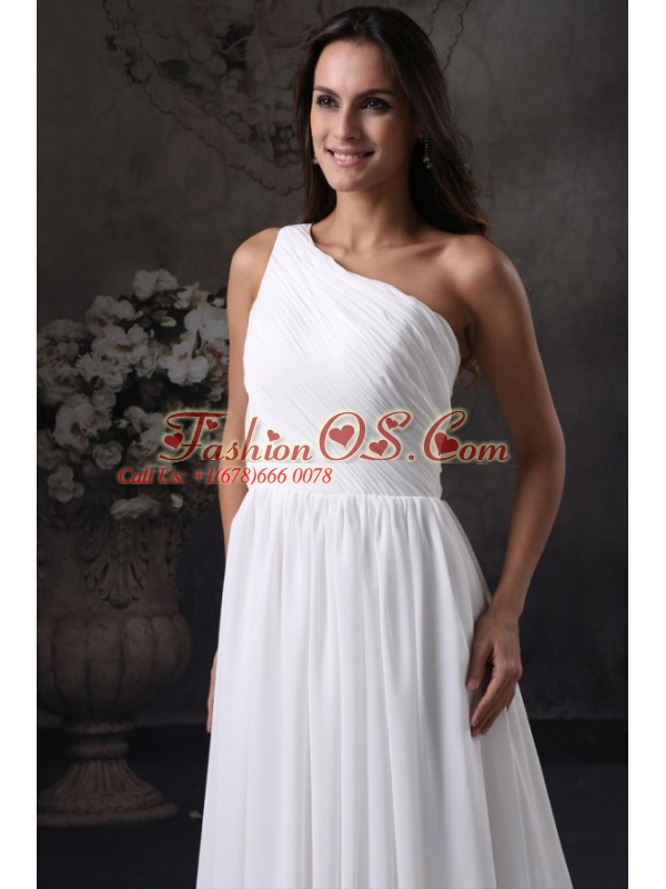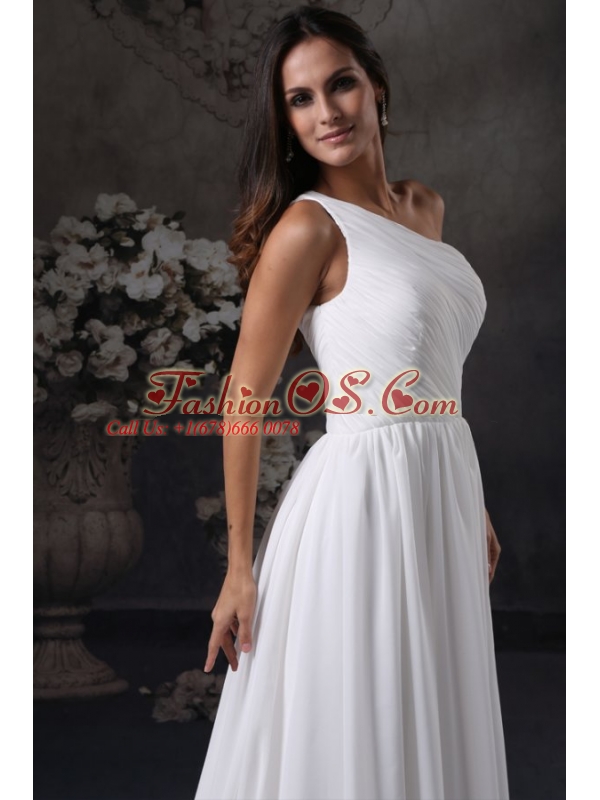 Home >  Wedding Dresses >  Perfect Wedding Dresses > Empire One Shoulder Chiffon Ruching Side Zipper Wedding Dress with Court Train
