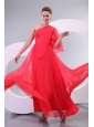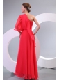 Empire One Shoulder Floor-length 3/4 Sleeve Prom Dress in Coral Red
