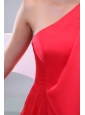 Home >  Prom Dresses >  Plus Size Prom Dresses > Empire One Shoulder Floor-length 3/4 Sleeve Prom Dress in Coral Red