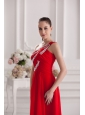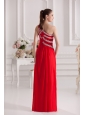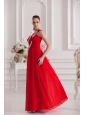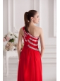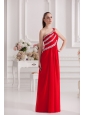Empire One Shoulder Floor-length Beading Red Prom Dress