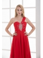 Empire One Shoulder Floor-length Chiffon Red Prom Dress