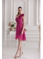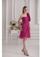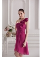 Empire One Shoulder Hand Made Flowers Ruching Fuchsia Dress Prom