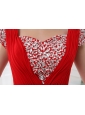 Home >  Prom Dresses >  Discount Prom Dresses > Empire Red Floor-length Square Beading and Ruching Cap Sleeves Prom Dress
