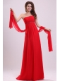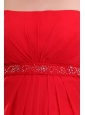 Empire Red Strapless Beading and Ruching Chiffon Prom Dress