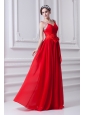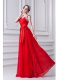 Empire Red Straps Chiffon Prom Dress with Beading and Bowknot