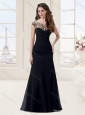 Home >  Evening Dresses > Empire Scoop Applique Black Evening Dress with Cap Sleeves