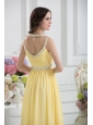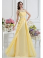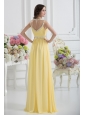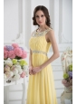 Empire Scoop Beading Ruching Light Yellow Prom Dress