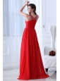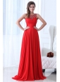 Empire Scoop Wine Red Ruching Beading Chiffon Prom Dress