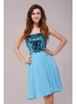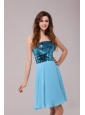 Empire Sequins Strapless Knee-length Light Blue Prom Cocktail Dress