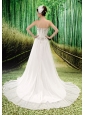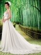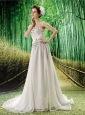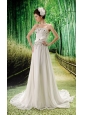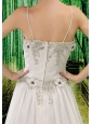 Empire Spaghetti Straps Beaded Bodice Chiffon Brush Train Wedding Dress