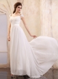 Home >  Prom Dresses >  Elegant Prom Dresses > Empire Square 2013 Wedding Dress With Cap Sleeves and Brush Train Chiffon