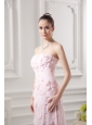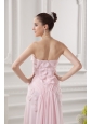 Empire Strapless Appliques Beading Chiffon Baby Pink Prom Dress