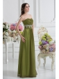 Empire Strapless Chiffon Beading Ruching Olive Green Prom Dress