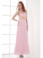 Empire Straps Baby Pink Prom Dress with Beading and Ruchings Chiffon