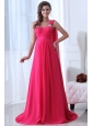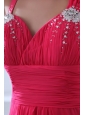 Empire Straps Hot Pink Beading and Ruching Chiffon Prom Dress