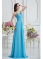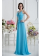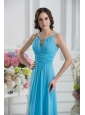 Empire Straps Ruching Baby Blue Floor-length Chiffon Prom Dress