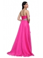 Empire Sweetheart Beading and Ruching Chiffon Hot Pink Prom Dress