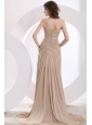 Empire Sweetheart  Champagne Ruching Chiffon Brush Train Prom Dress