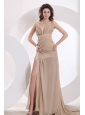Home >  Prom Dresses >  Elegant Prom Dresses > Empire Sweetheart Champagne Ruching Chiffon Brush Train Prom Dress