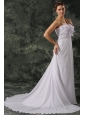 Empire Sweetheart Court Train Beading and Hand Made Flower Chiffon Wedding Dress