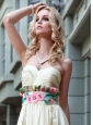 The compliments will pour forth when youre decked out in this stunning prom dress.The fitted bodice is accented with a sweetheart neckline and crossed ruchings in silky chiffon fabric. The chic waistband is accented with beautiful flowers embellishment that can defines your natural waistline. This flower print evening gown is designed in mutil color floor-length, giving you a long lean look. A zipper up in the side creates this so gorgeous design.