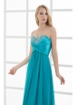 Empire Teal Blue Sweetheart Floor-length Beading Taffeta Prom Dress
