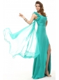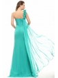 Home >  Prom Dresses >  Best Prom Dresses > Empire Turquoise One Shoulder Chiffon Watteau Train Ruching Prom Dress
