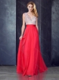 Empire V Neck Red Prom Dress with Appliques and Beading